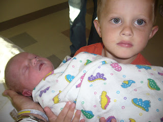 Eric wasn't as happy with the news. He wanted to know why Kyra wasn't a boy. When he got his answer, he just restated, "but I wanted a boy." He and Ian didn't want to come to the hospital to see their "dumb sister". However, as soon as they walked into my room they couldn't stop talking about how pretty she was and how they loved her. It just took seeing her to convince them that she is a keeper.